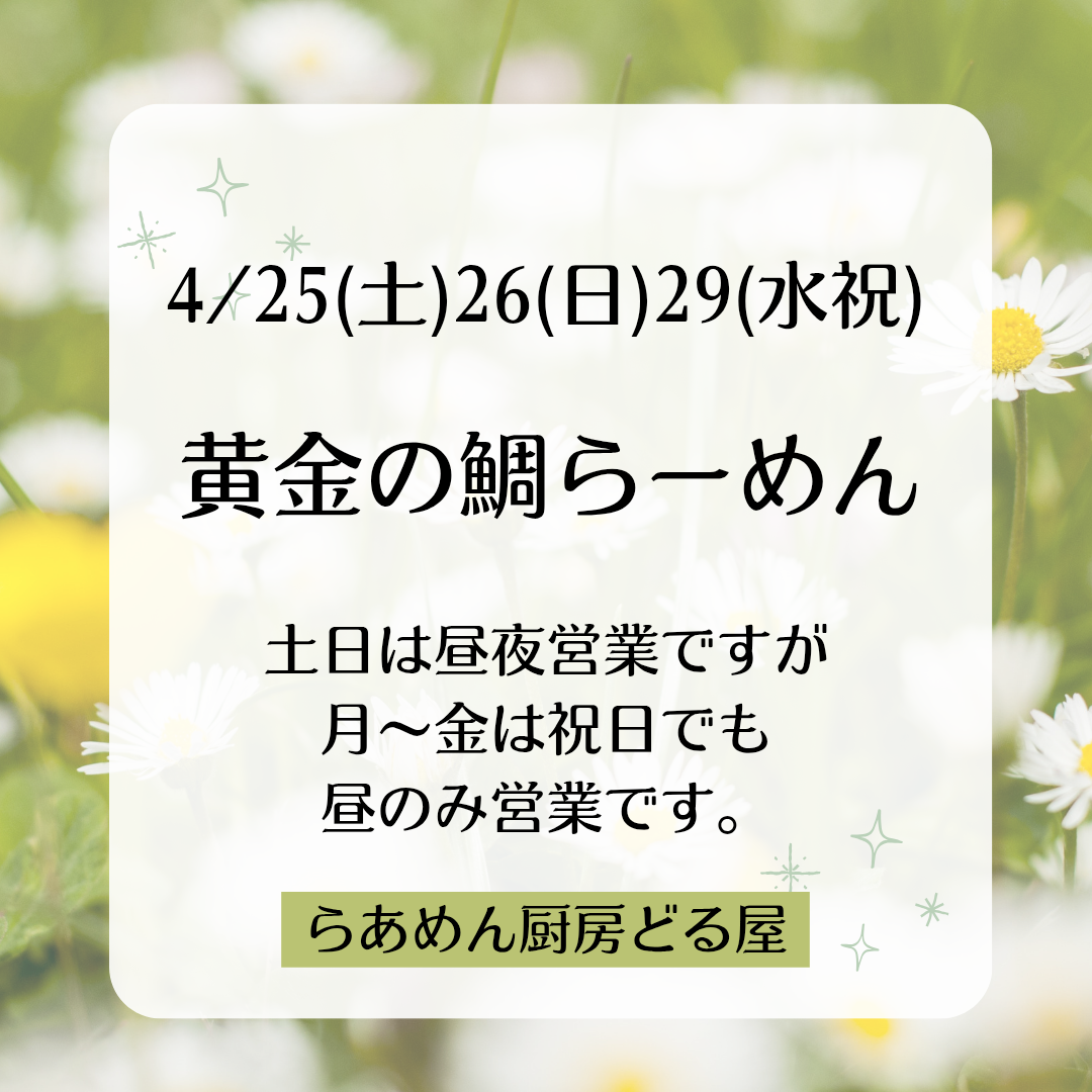 🍀4/25(土)26(日)29(祝)は