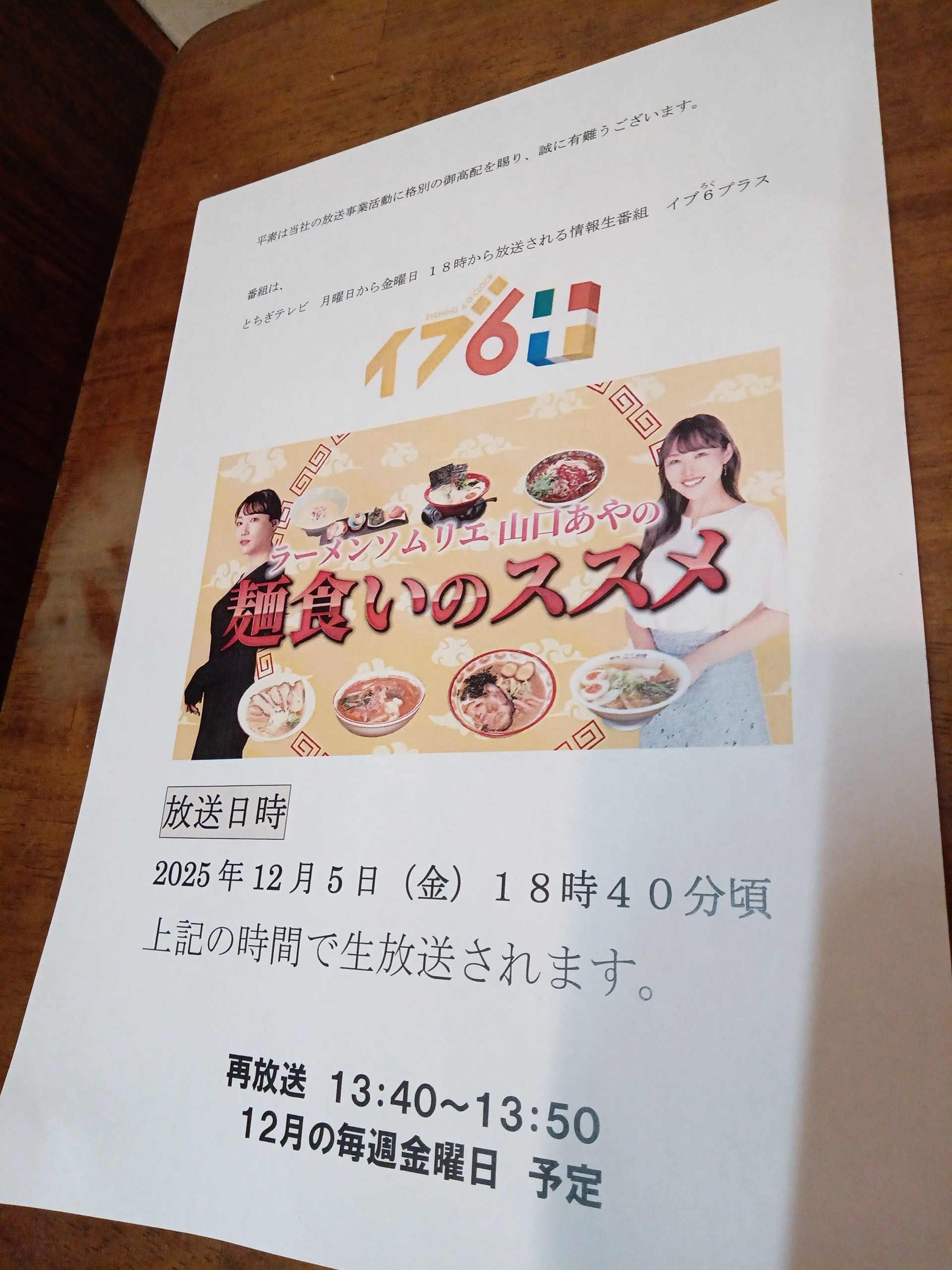 先日、とちぎテレビさんのラーメンのコーナーの取材を受けました。